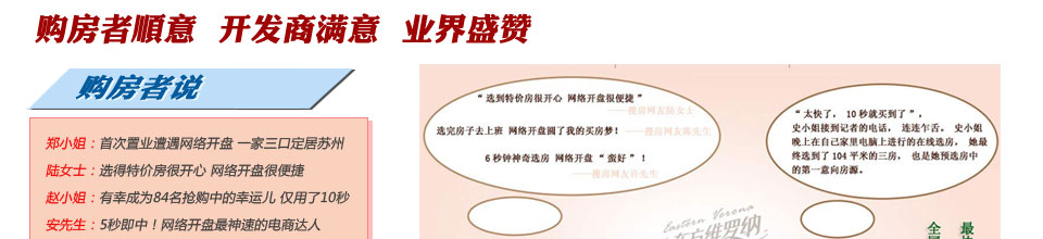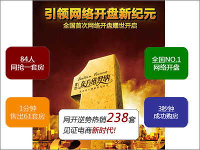 从全国首个网络开盘案例——苏州中新置地集团旗下东方维罗纳,成就“1分钟成功售出61套房,3分钟内选房基本全部结束”,到杭城嘉里桦枫居网上预选房,让方便、效率的网络操作方式全方位展示,购房者惊叹,开发商赞扬,“搜房电商网上选房订房解决方案”开启电商历史新纪元。